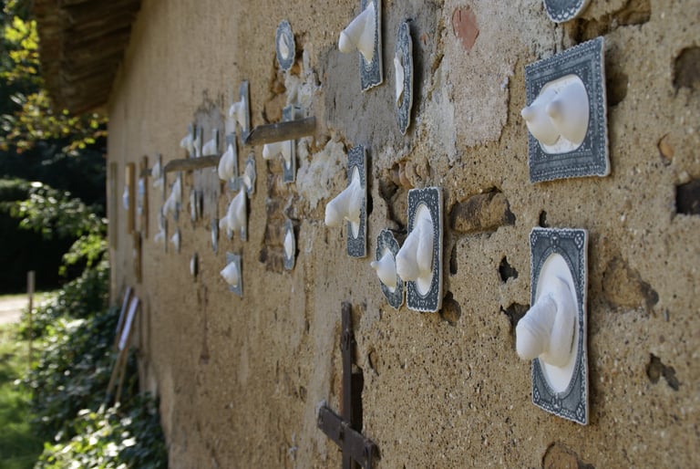 Ni provocantes ni idéalisées, elles affirment la diversité des corps dans ce qu’ils ont de plus vrai et de plus vulnérable. Ces fragments charnels oscillent entre tendresse et léger décalage. La porcelaine détourne la pudeur et interroge notre rapport à la nudité. Elle devient un support de réflexion sur l’intime et sur le regard que nous portons sur ces parties du corps auxquelles nous attribuons, tour à tour, un caractère précieux ou ridicule.