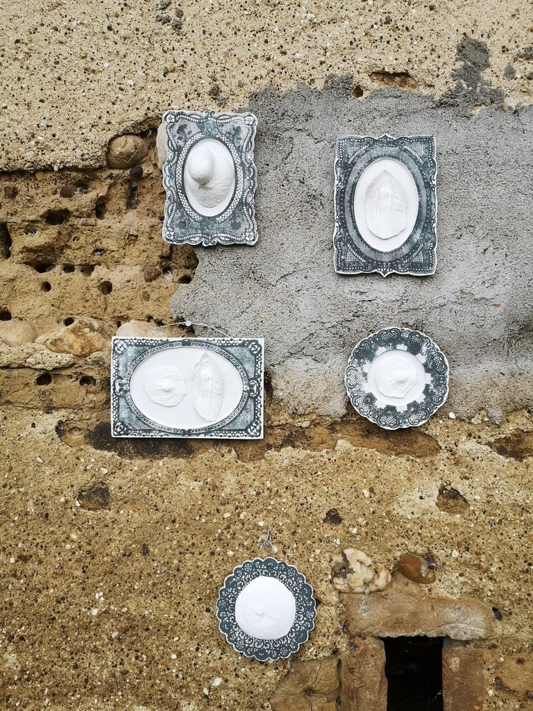 À l’occasion de Campagn’Art, je présente une série de bas-reliefs en porcelaine intitulée Portraits de famille. Ces pièces donnent à voir des présences familières, sensibles et silencieuses.